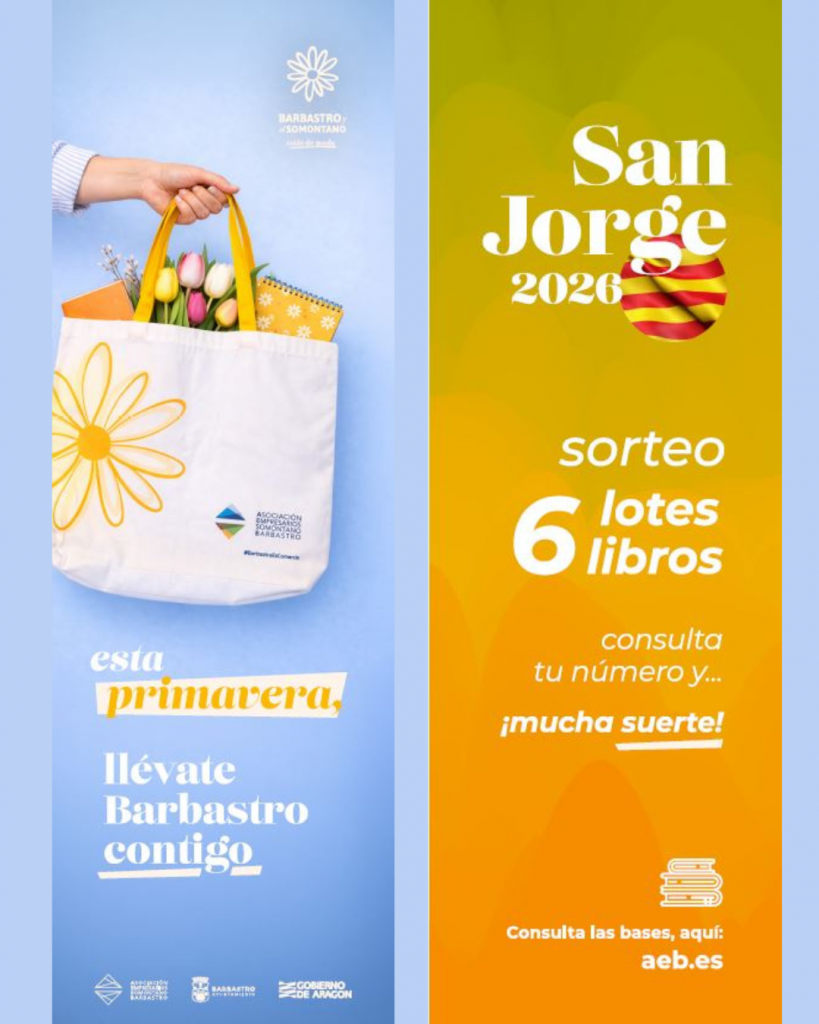 Barbastro, 27 de abril de 2026.– La Asociación de Empresarios de Barbastro ha dado a conocer los números ganadores del Sorteo de San Jorge 2026, una iniciativa enmarcada dentro de la campaña de dinamización comercial “Esta primavera, llévate Barbastro contigo” , que tiene como objetivo fomentar las compras en el comercio local y premiar la fidelidad de los clientes.
